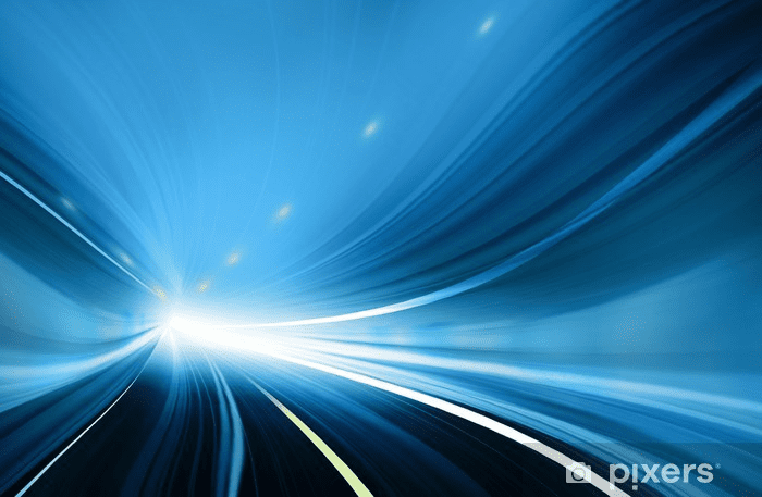 Abstract image of blue and white light streaks curving forward, evoking the rapid delivery of SEC filing alerts as you move swiftly toward a bright white light at the vanishing point.