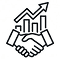 A black and white line drawing of two hands shaking in front of a bar graph with an upward-pointing arrow, symbolizing business growth, successful partnership, and the benefits of free SEC filing alerts.
